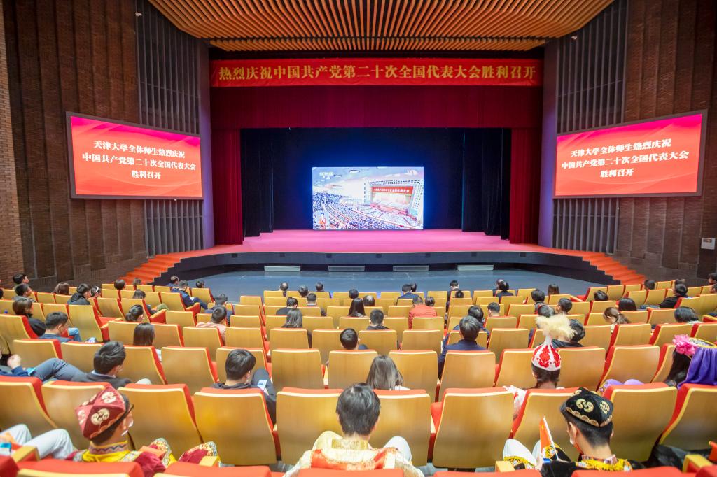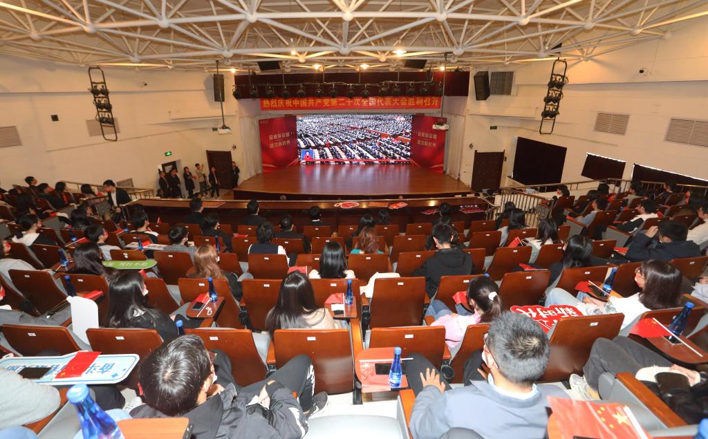 永利集团3044官网欢迎您全校师生干部群众纷纷通过电视、广播、网络等渠道收看收听党的二十大开幕会。校领导及全校机关干部和师生代表在北洋园校区求实会堂、卫津路校区大学生活动中心报告厅集中收看。在集中收看现场,大家佩戴党徽团徽、手持鲜艳的国旗,聚精会神收看大会盛况,掌声不断。